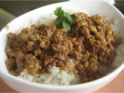 (Above: Ground pork sauce over rice.)
